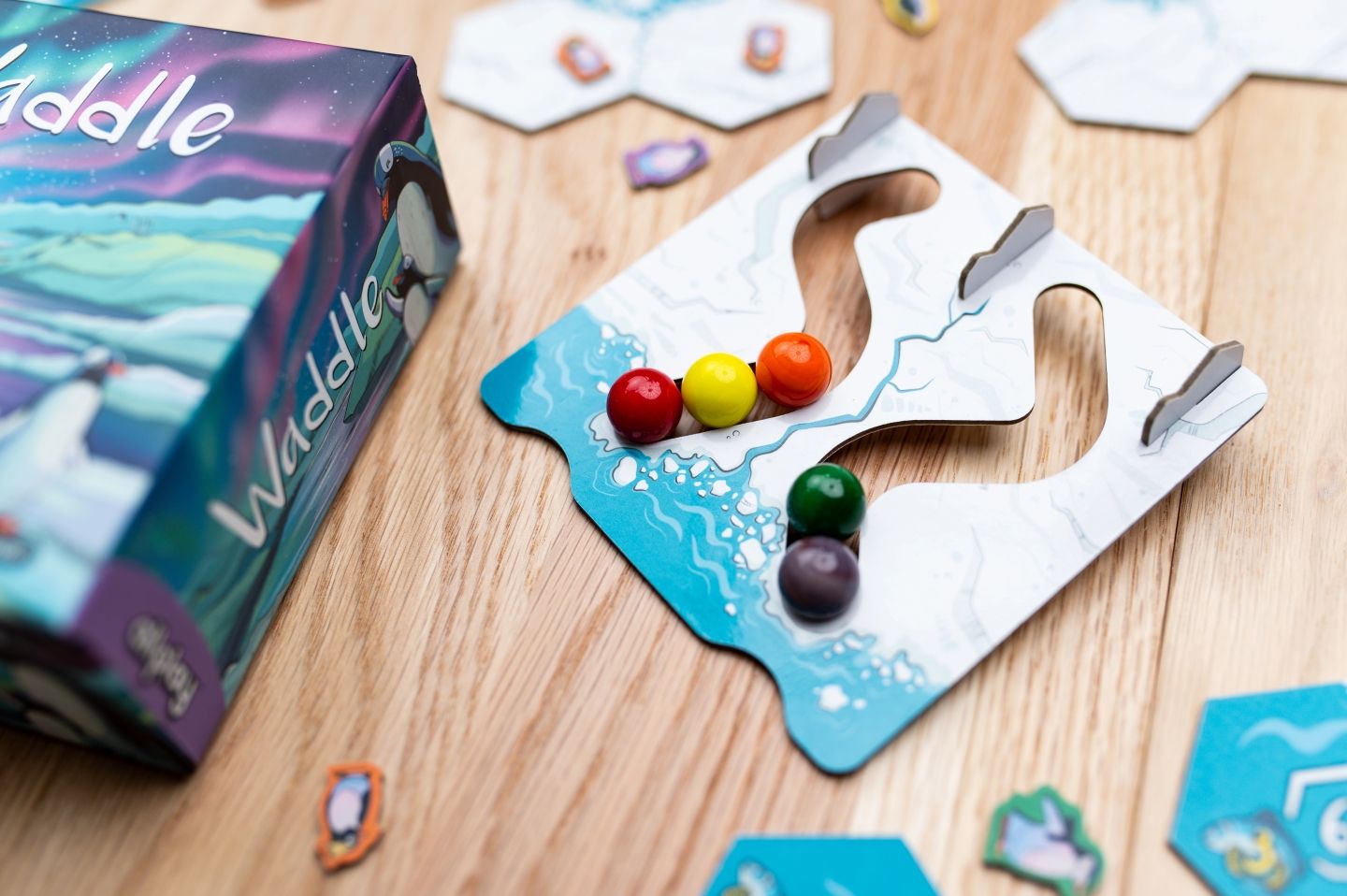 Try to balance area control (surrounding the fish) with forming large groups (known as Waddles!). The variable turn order is tracked by marbles!