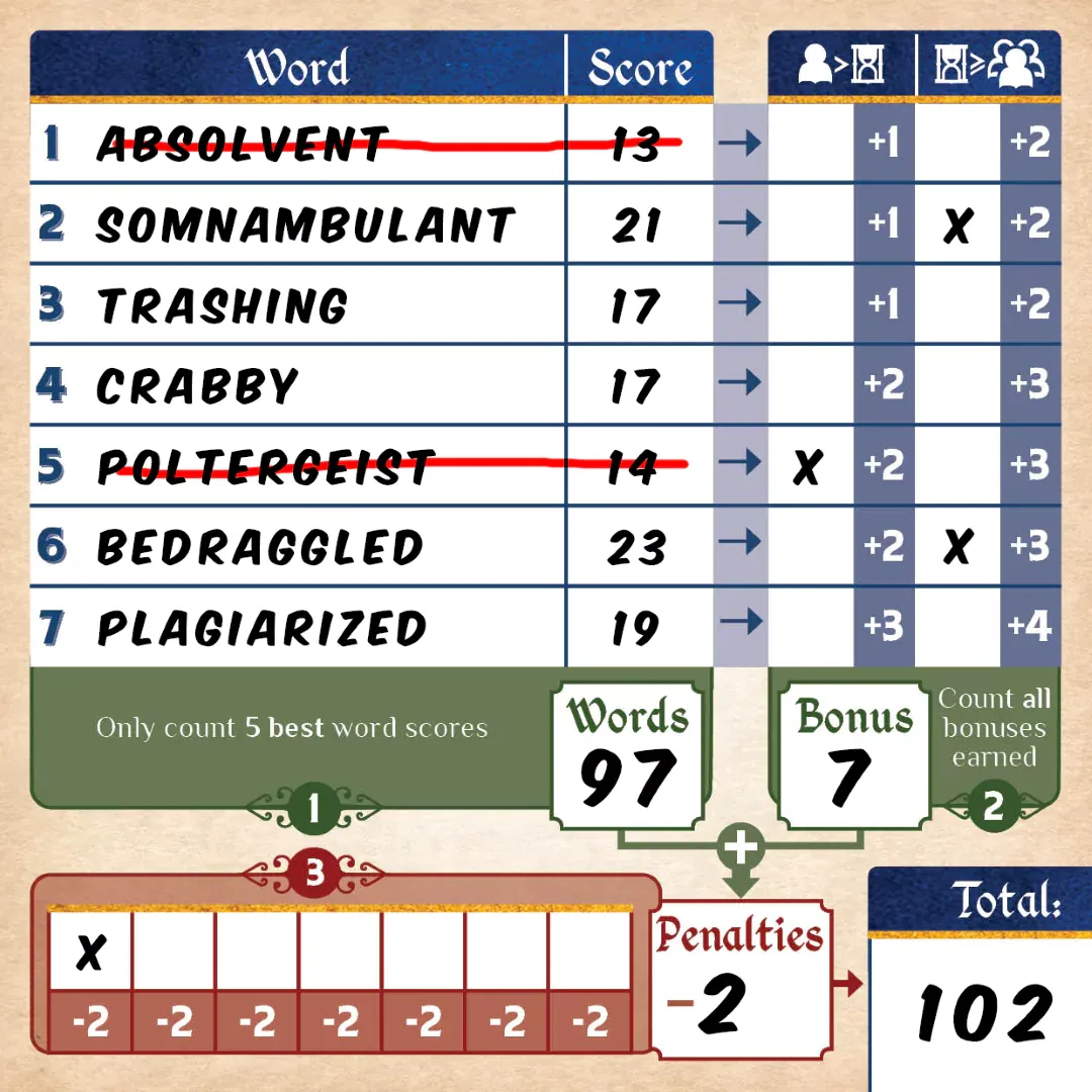 Don't forget to subtract penalties for times you couldn't make a word!