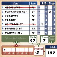 Multiple uses count multiple times! Score bonus points if you scored higher than the Fastest Wordsmith or if you were the Fastest Wordsmith and scored higher/tied with at least 3 opponents.